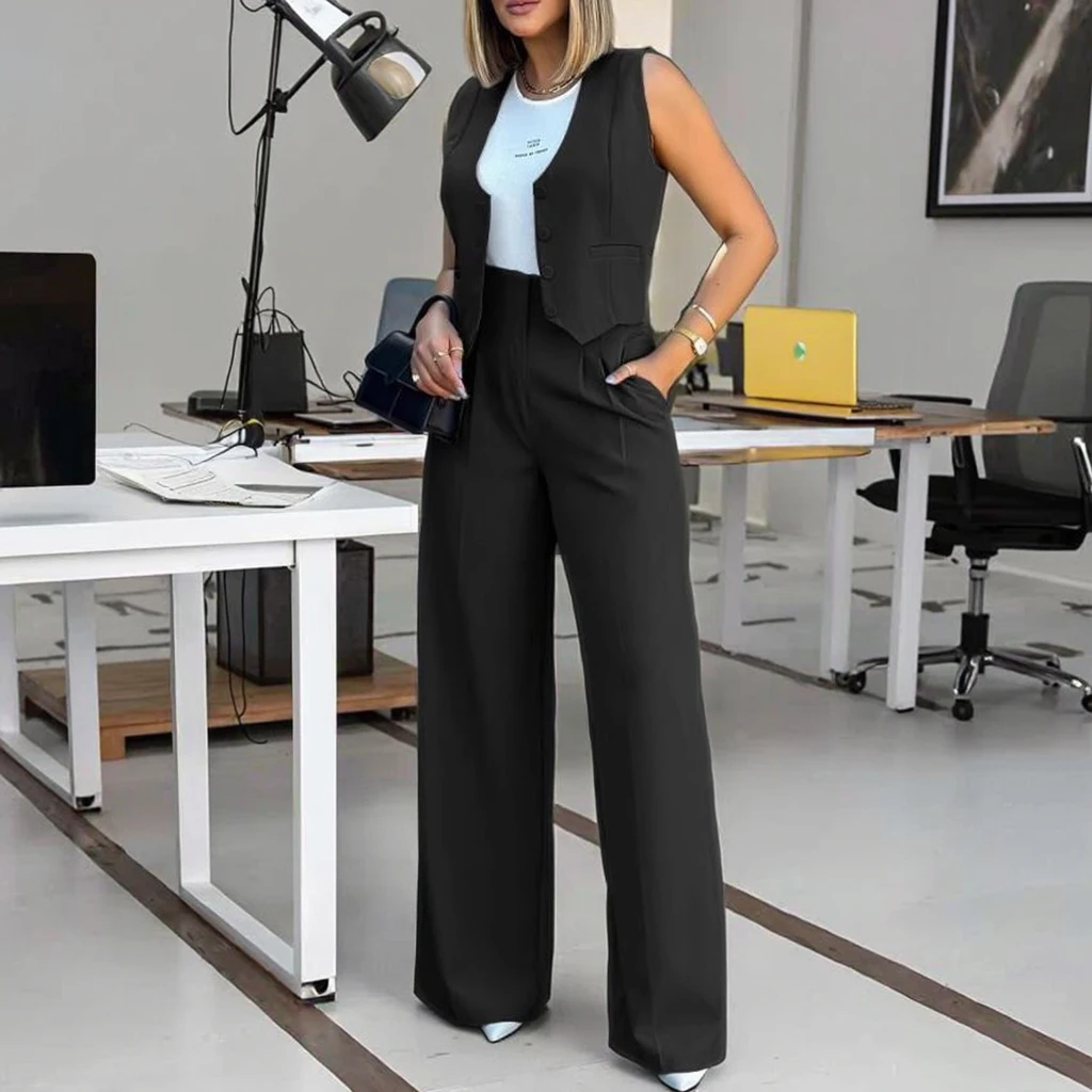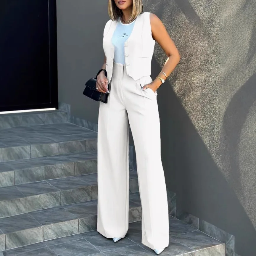 2025 Summer New Fashion OEM 2-Piece Casual Suit with Wide Leg Pants and Vest European American Cross-Border New Style Skirt